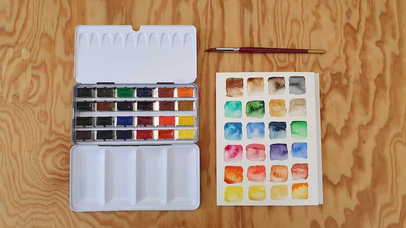 An vier Arbeitsplätzen können von den Besuchern selbst kleine Aquarelle gemalt werden.